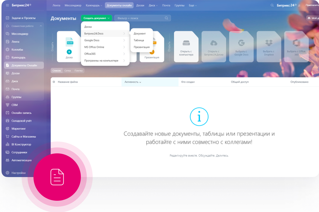 Битрикс24 предоставляет комплексный инструмент организации совместной работы с задачами и проектами всех отделов — от бухгалтерии до разработки.
