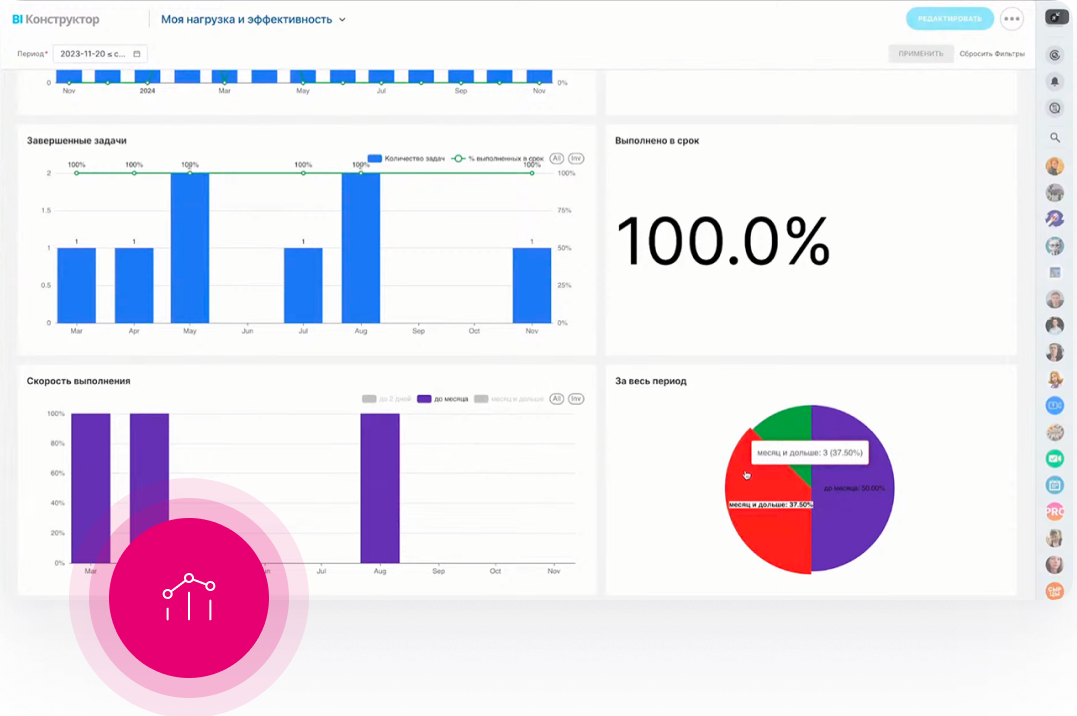Следите за воронками, планами продаж, эффективностью рекламы и загрузкой команды в одном окне