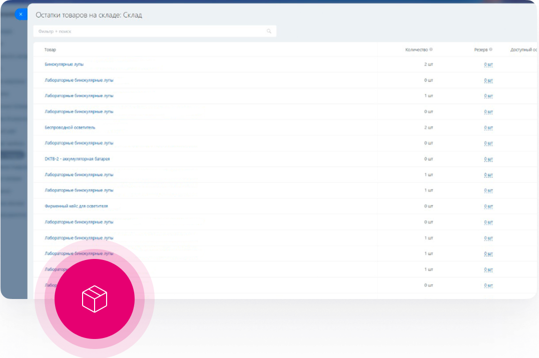 Добавляйте любое количество товаров и складов. Остатки обновляются автоматически на всех складах при оформлении одной операции