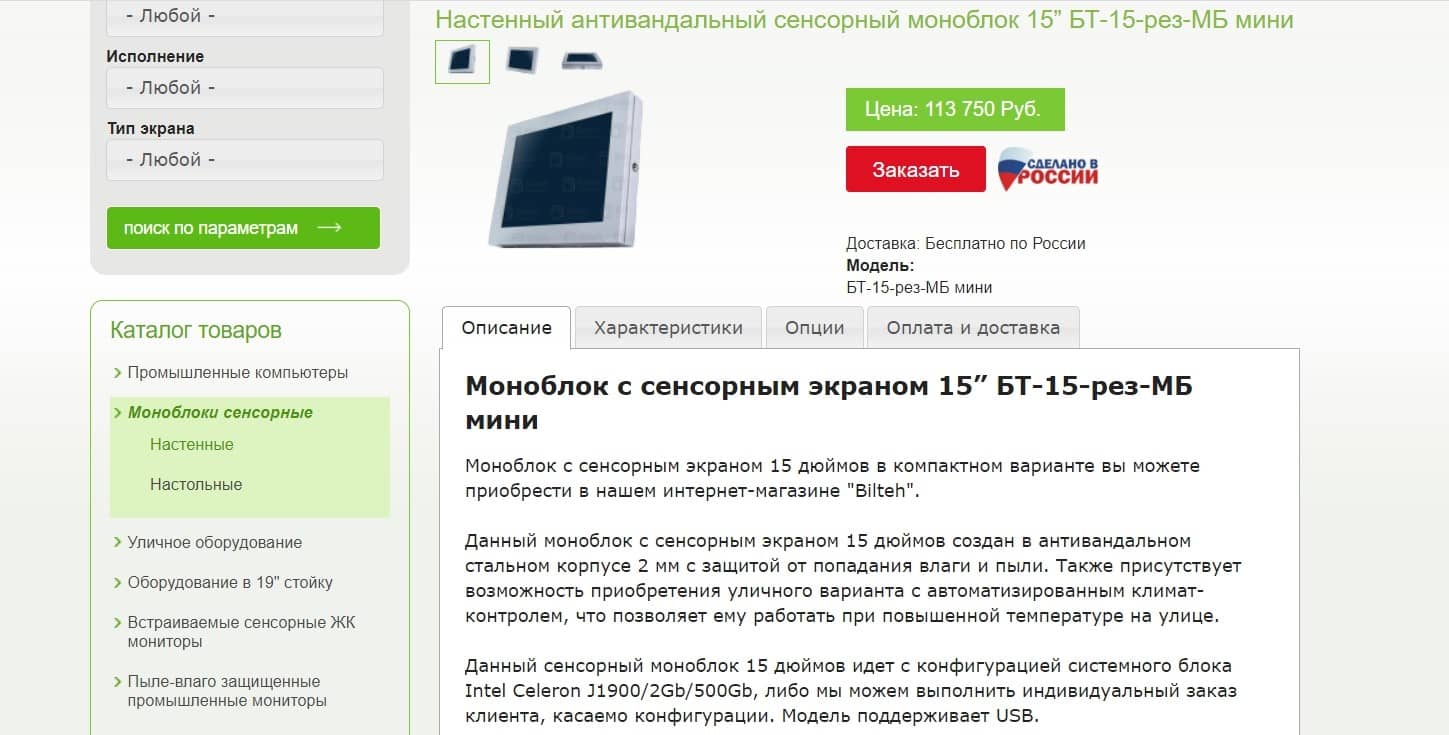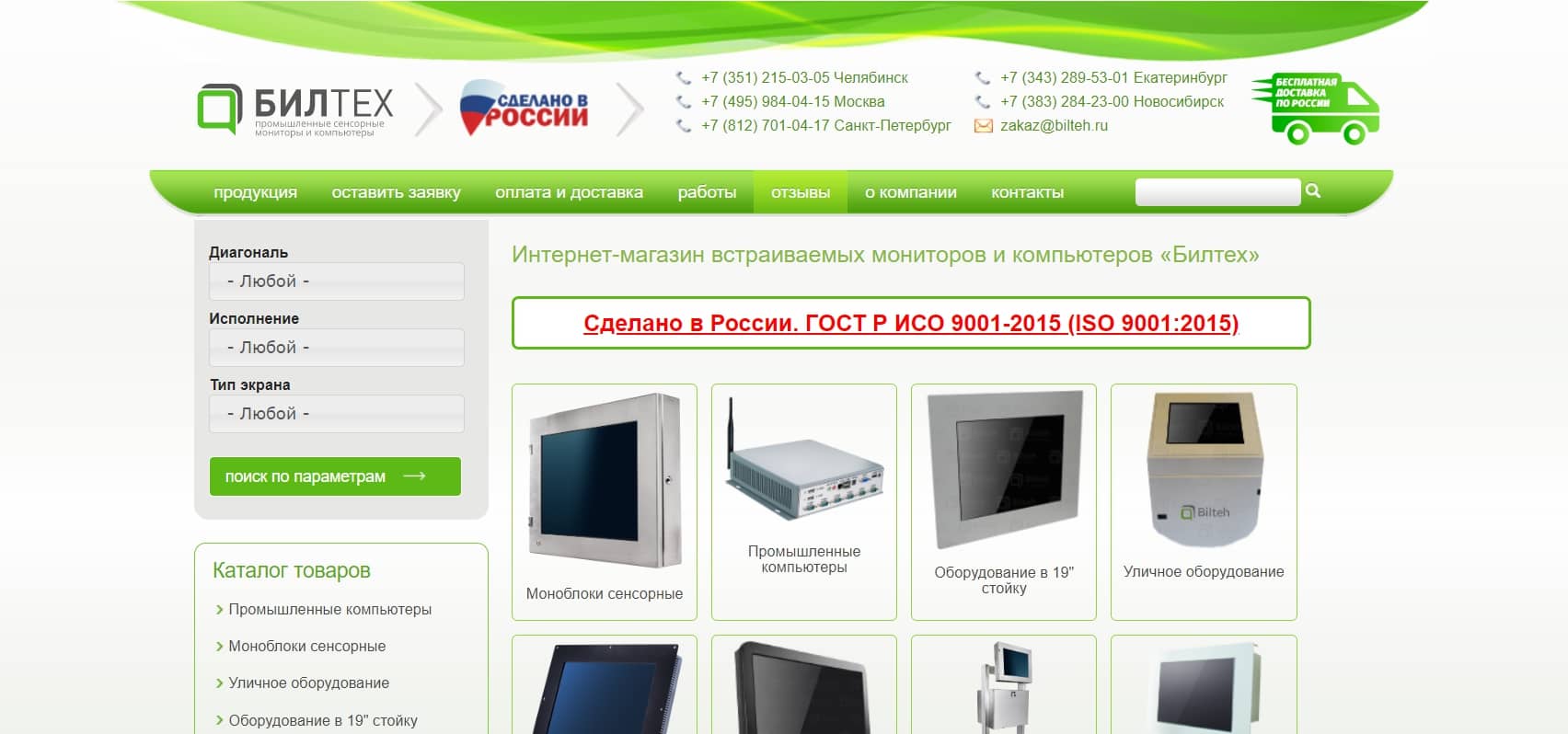 Компания «Билтех» является российским производителем промышленных сенсорных мониторов и компьютеров. Предприятие обеспечивает полный цикл производства: проектирование, испытания, производство корпусов, сборка, тестирование, гарантийный и постгарантийный ремонт.