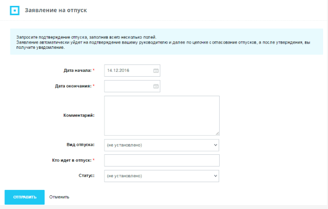 - Модернизация типового бизнес-процесса по согласованию отпусков;