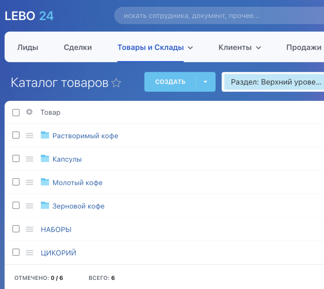 Дополнительно были настроены и загружены каталог реализуемой продукции LEBO Coffee и база торговых точек в CRM «Битрикс24».