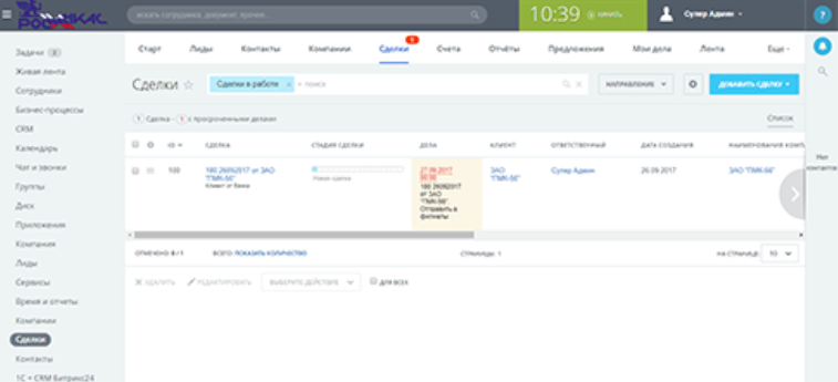 • Реализовать возможность управления сделками — от лида до выставления коммерческого предложения и заключения договора