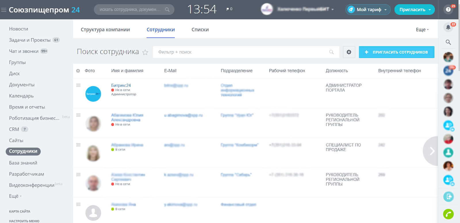 Суммарно к Битрикс24 было подключено 235 сотрудников «Союзпищепром», каждому присвоили индивидуальную корпоративную почту.